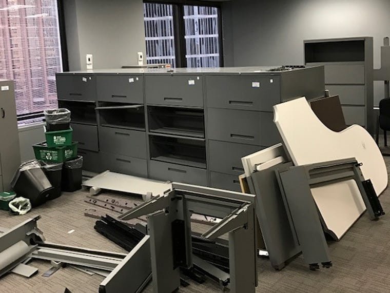 Office desks & chairs • Cubicles & workstations • Shelving & fixtures • Electronics & equipment • Packaging & bulk waste • Retail displays • Renovation debris • Mixed commercial junk
